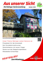 Die Ratinger Seniorenzeitung "Aus unserer Sicht" wurde im Jahre 1993 gegründet. Das ehrenamtliche Redaktionsteam unter Leitung von Herrn Joachim Dangelmeyer, trifft sich öfter im Jahr zu Redaktionssitzungen. Durch diesen ehrenamtlichen Einsatz und die Unterstützung der Stadt Ratingen wird erreicht, dass diese Seniorenzeitung viermal im Jahr erscheinen kann.